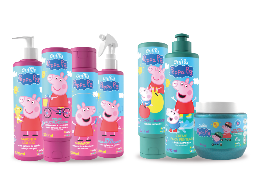 Cada produto traz uma cena da Peppa nas embalagens, tornando o kit uma ideia irresistível para crianças que são fãs da porquinha e querem ter um exemplar de cada.