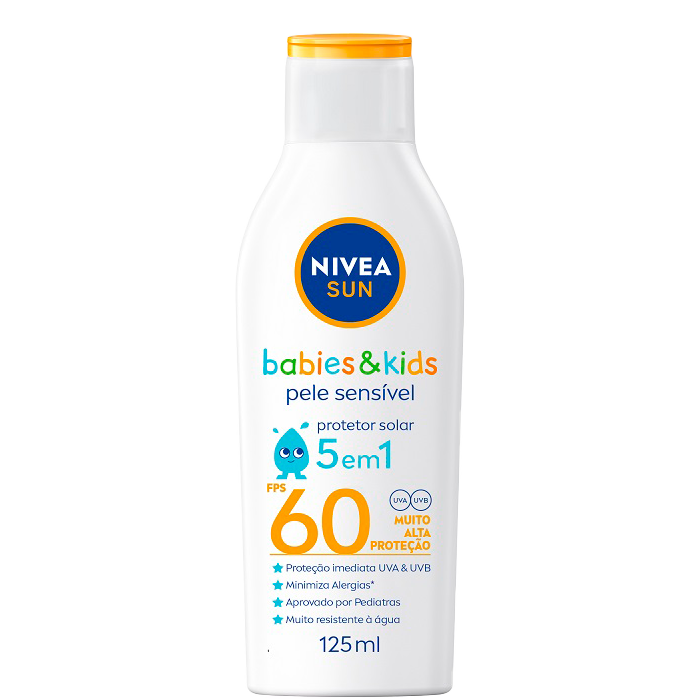 Nivea Sun Kids&Babies, para proteger a pele delicada das crianças e bebês, fácil de espalhar, alta proteção e resistente à água;