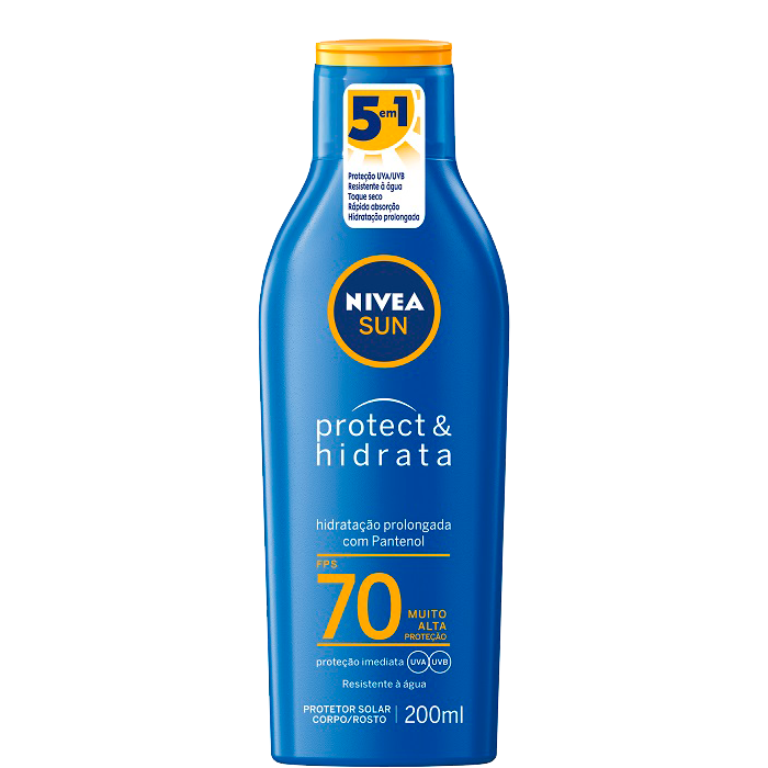 Nivea Sun loção corporal, com FPS até o 70, também tem efeito hidratante e toque seco;